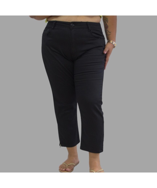 Couleur : Noir Coupe : Ajustée, longueur pantacourt Détails : Fente zippée en bas de jambe Fermeture : Bouton et zip classique Style : Chic et polyvalent Un pantacourt noir élégant avec détail zippé, parfait pour un look moderne, confortable et facile à porter.