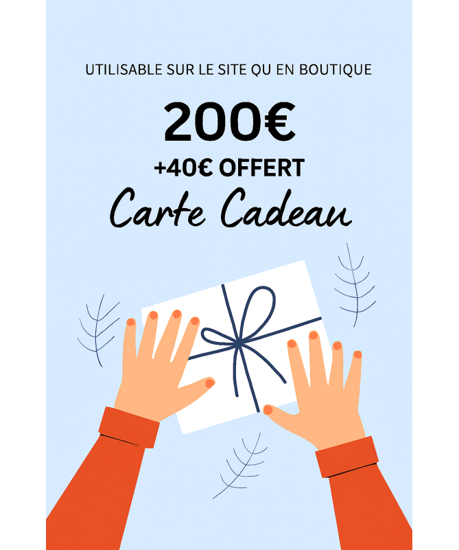Utilisable sur le site ou en boutique +40€ offerts → Valeur totale : 240€