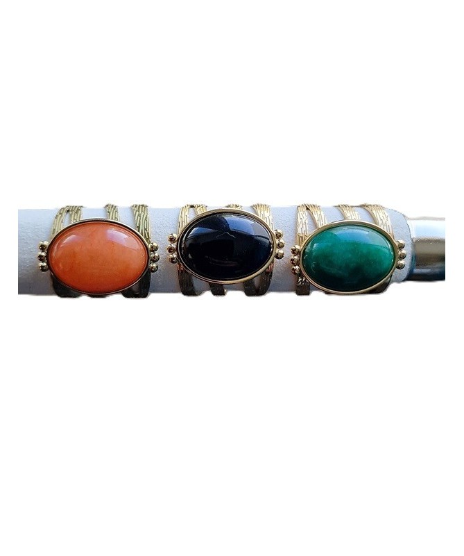 - Design : Bague ajustable avec une monture détaillée qui encadre la pierre ovale