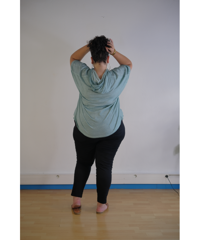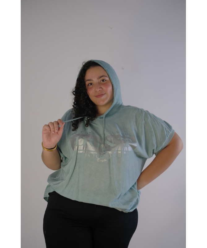 Découvrez notre T-shirt Confort à Capuche, une pièce incontournable pour votre garde-robe. Fabriqué dans un tissu doux et léger, ce haut est idéal pour les journées décontractées ou les moments de détente. Avec sa capuche pratique et ses couleurs tendance, il combine style et confort à la perfection. Que vous optiez pour le vert menthe rafraîchissant ou le violet apaisant, ce t-shirt s'associe facilement avec un pantalon noir ou un jean pour un look moderne et stylé. Ajoutez des accessoires simples et des sandales pour compléter votre tenue.